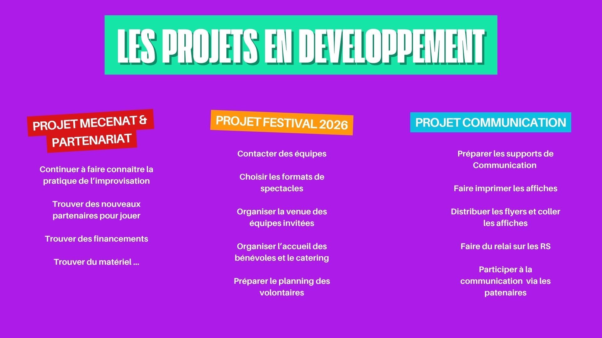 Vous trouverez ici aussi le récapitulatif des projets déjà en cours ou programmés pour la saison qui débute. Il y aura aussi sûrement d'autres projets, notamment avec des jeunes équipes du Val d'Oise qui nous ont sollicités récemment.